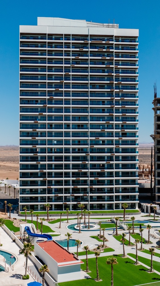 Encantame Soleil at Encantame Resorts is the newest luxury beachfront resort located on the inviting shores of Playa Encanto in Puerto Peñasco. Complementing the majestic Encantame Towers to its west, Encantame Soleil consists of three 24-story meticulously designed buildings. Guests may select from luxurious 1, 2, and 3 bedroom options, or opt for an equally splendid one bedroom studio. Rendezvous, the first tower at Encantame Soleil is completed and now delivering. Jubilee, a second tower, is expected to be completed in 2026. Additionally, a third tower, The Residence, will provide an upscale residential-only seaside living experience.