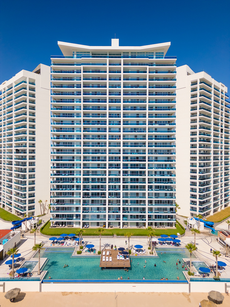 Located on the pristine shoreline of Playa Encanto to the east of Rocky Point, Encantame Towers is the flagship complex of Encantame Resorts. Its 24-story Velero, Verano, and Viento towers are modern high-rises, offering contemporary design and sweeping views overlooking the Sea of Cortez. Abundant resort-style amenities at Encantame Towers include infinity-edge pools, swim-up bars, onsite restaurants for casual dining, state-of-the-art fitness facilities, as well as lazy rivers and waterslides for the entire family to enjoy. Encantame Towers also offers rooftop sky pools (adults only 21+) atop the eastern and western towers.